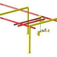 Manipulace s břemeny uvnitř výrobních a skladových hal pomocí kladkostroje s ručním postrkem nebo elektrickým pojezdem.